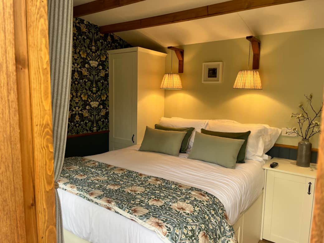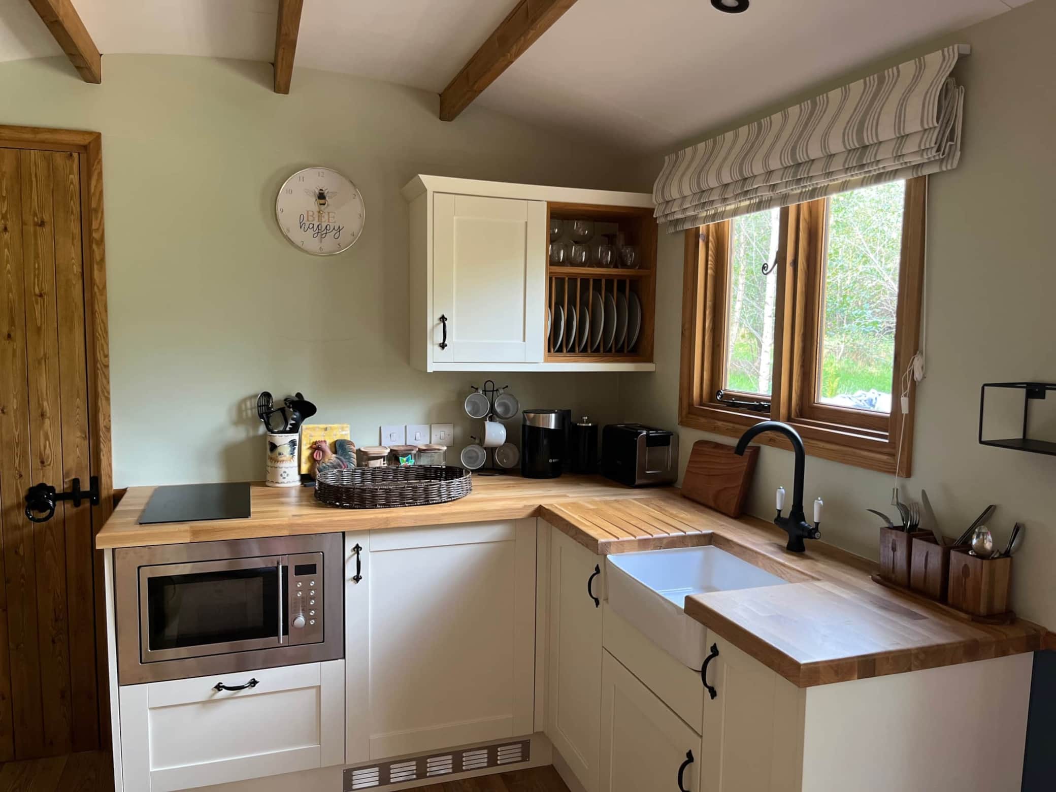 Our luxurious shepherds hut is the perfect cosy stay for two people. It features a kingsize bed, kitchenette (with stove, fridge/freezer, microwave, kettle & toaster), ensuite bathroom with walk in shower and a small lounge/dining area. The hut is equipped with underfloor heating, television, wifi and compliant with health & safety regulations.